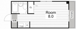 | 間取り | 1R | 専有面積 | 18m² (8帖) |