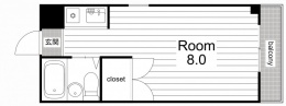 | 間取り | 1R | 専有面積 | 18m² (8帖) |